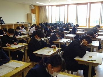本日の2,3年生は実力テスト。4時間目は3年生理科、2年生英語でした。